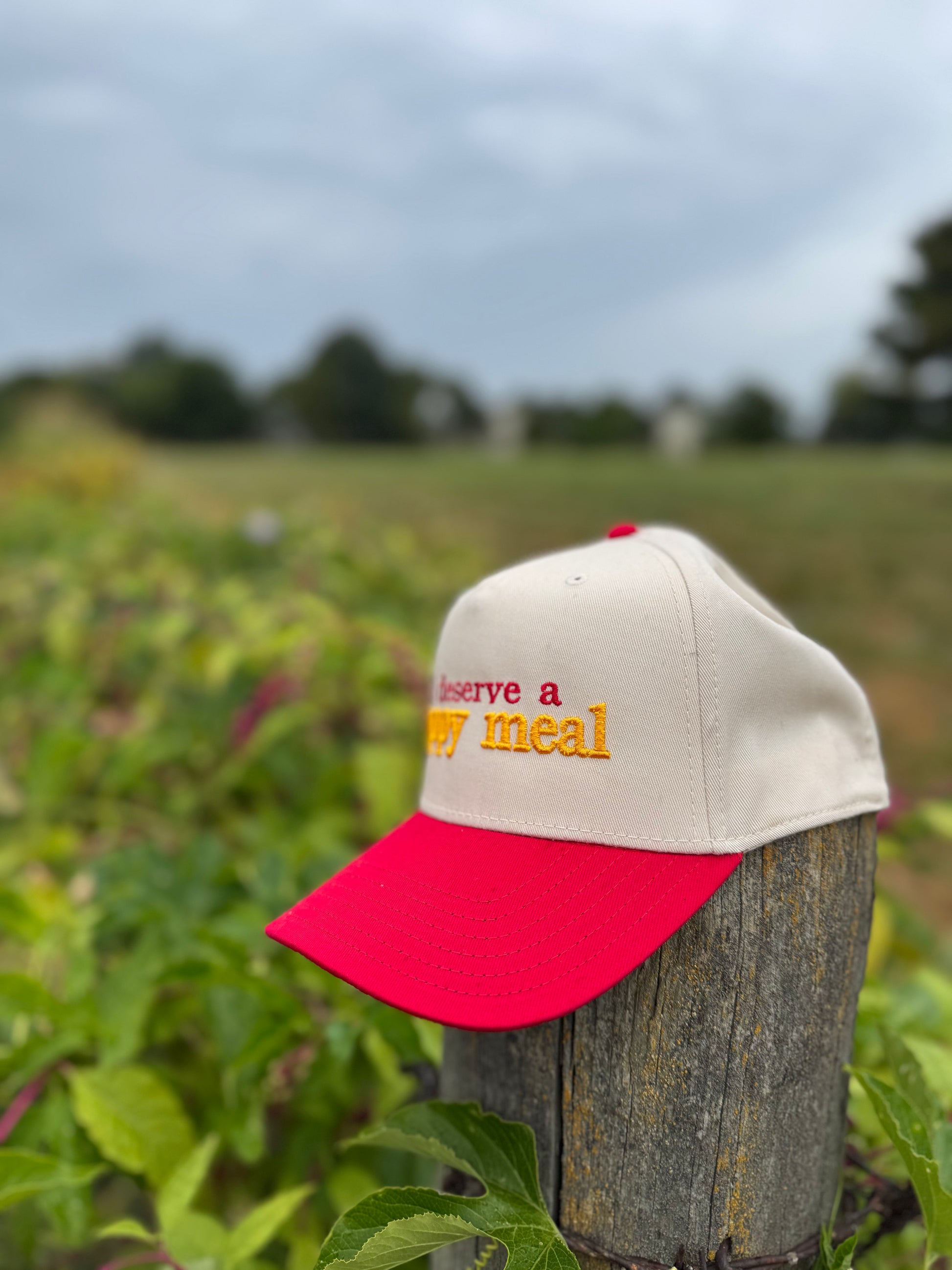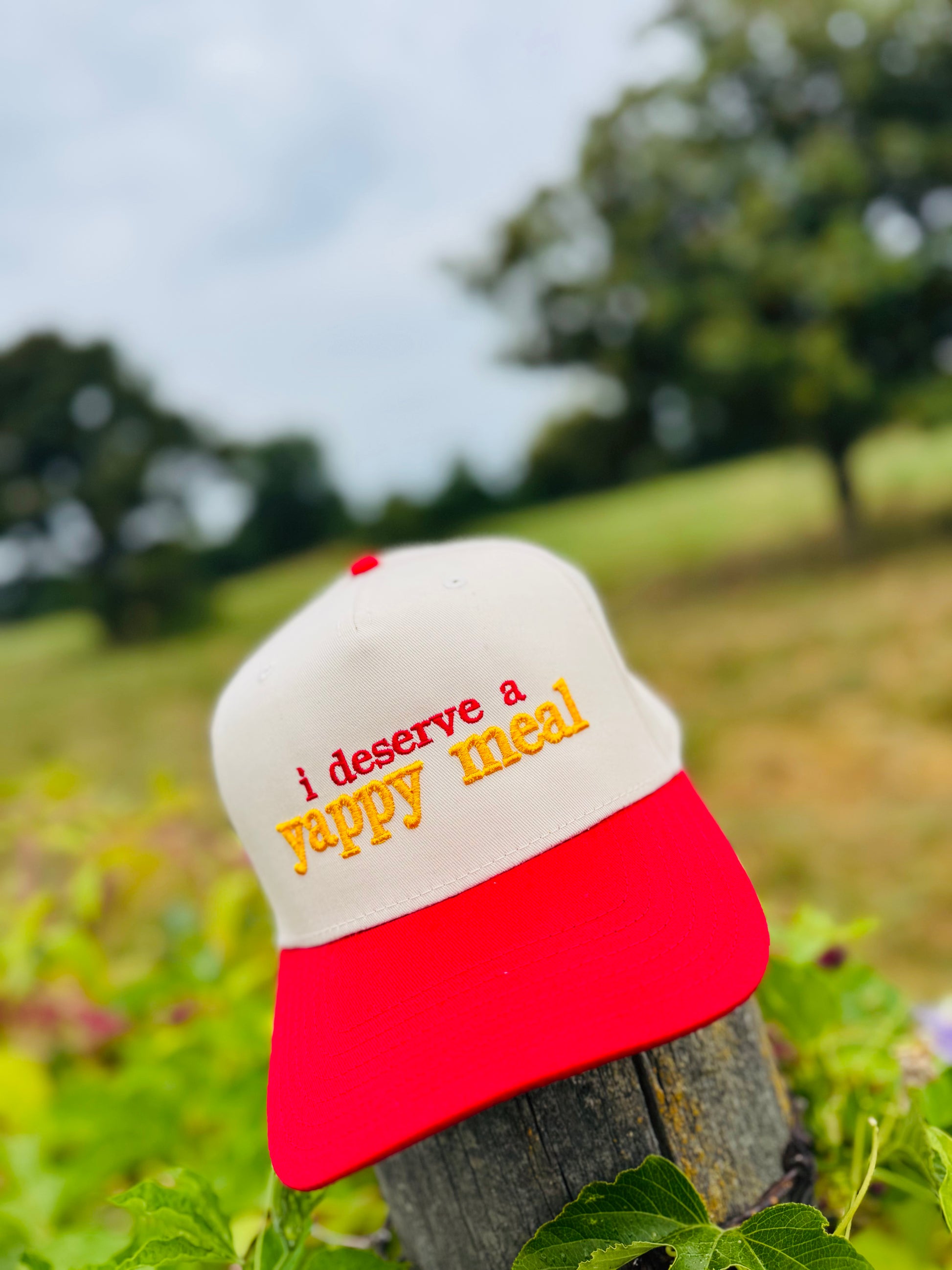 Level up your headwear game with the “I Deserve a Yappy Meal” rope hat from EZPZ Outfitters. Built on a classic Otto two-tone blank, this cap pairs a natural crown with a bold red bill and rope, finished off with eye-catching embroidery that speaks louder than words.