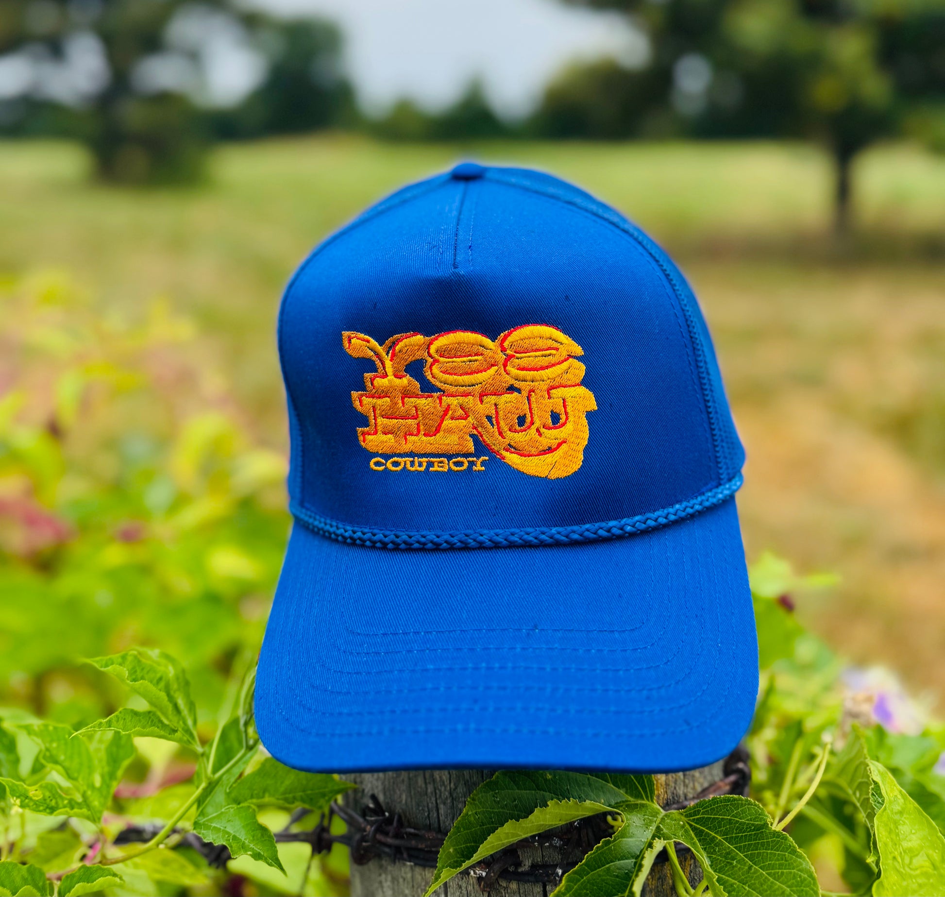 Tip your cap and your hat game. This new blue Otto rope hat pops with bold Yee Haw Cowboy lettering across the front—loud, proud, and ready for rodeos or just raising a little ruckus. Built with the classic rope detail, it’s the perfect mix of western grit and streetwear drip.