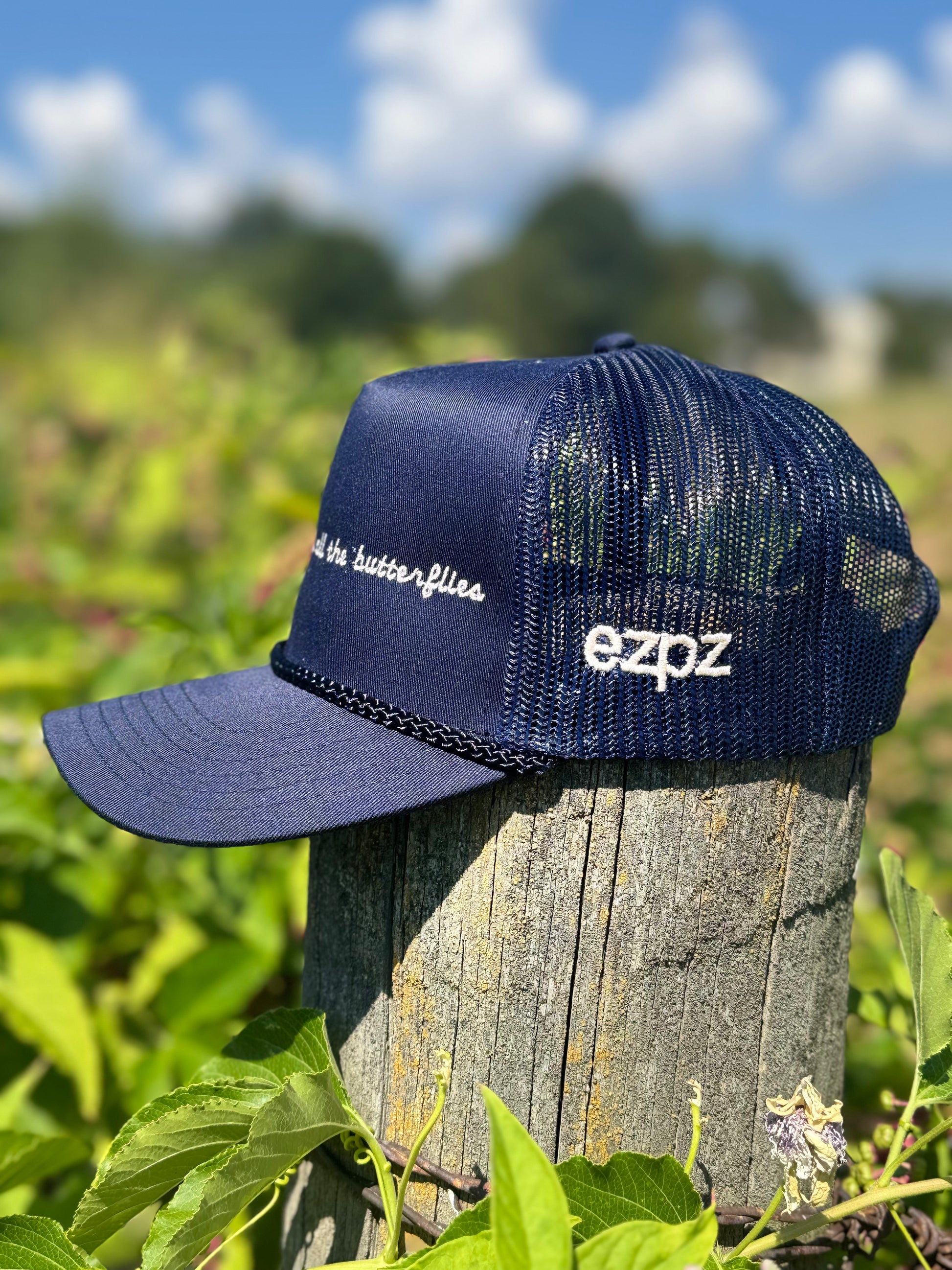 This all-blue Otto rope hat with matching rope trim is stitched with the dreamy lyric I Should Be Over All the Butterflies—but let’s be real, you’re not. Premium Otto construction, soft rope detail, and embroidery that says you’ve got both style and a soft side. Perfect for summer days, sunset drives, and anyone still stuck in the chorus.